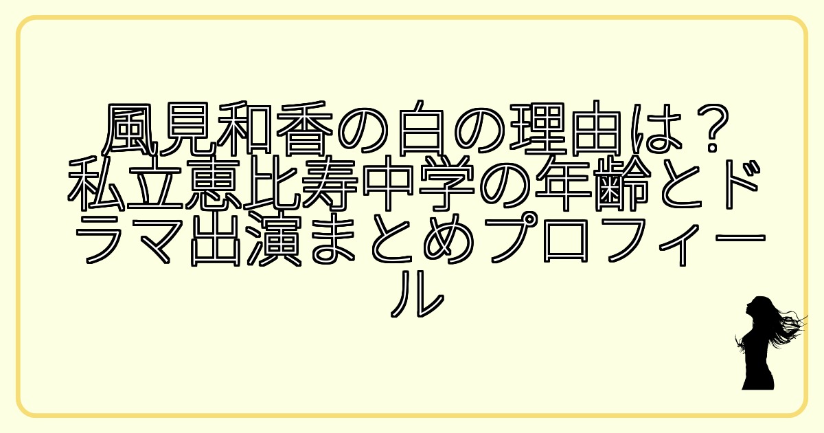 「風見和香 白 私立恵比寿中学 年齢 ドラマ」って、まとめて検索しちゃう気持ち、すごく分かります。“白”ってワードがまず気になるし、アイドルの担当色の話なのか、衣装の話なのか、それとも別の意味なのか…ちょっと混ざりやすいんですよね。さらに「私立恵比寿中学」って名前が学校っぽいから、初見だと「本当に私立の学校…?」って一瞬迷子になる人も多いはず。この記事では、風見和香さんの年齢が自分で計算できるプロフィール、“白”の正体(いくつかある)、そしてドラマ出演のポイントを、やさしく整理...